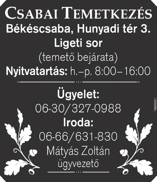 – kézbesítéssel kapcsolatos problémák esetén 46/998-800 HIRDETÉS 8–16 óráig – ha hirdetni kíván lapunkban, ezt a számot hívja 66/519-600