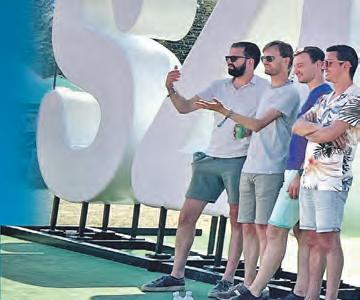 Gazdag turisták nyaralnak egy hatalmas luxus óceánjárón.