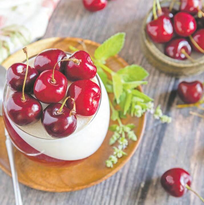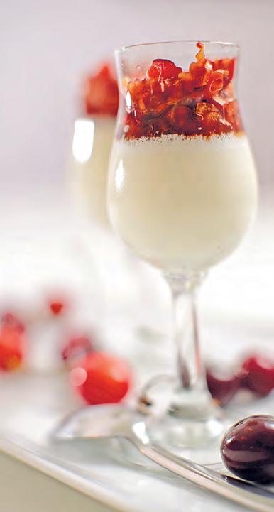 2 A zselatinlapokat áztassuk hideg vízbe 2-3 percre, azután nyomkodjuk ki, és adjuk a meleg tejszínes alaphoz. Néhány percig turmixoljuk, majd adagoljuk 4 db kisebb formába va gy üvegpohárba, és hűtsük le. Ha megdermedt, kanalazzuk rá az egy kevés mézzel és b alzsamecettel sűrűre forralt, megtisztított, kimagozott és felaprított cseresznyét.