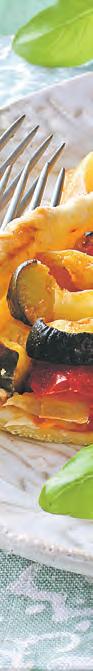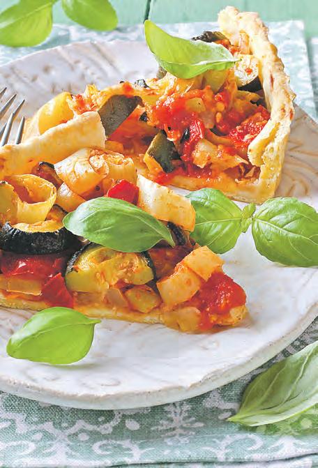 A töltelékhez: l 1 ek. olívaolaj l 1 fej vöröshagyma l 6 db lecsópaprika l 1 db cukkini (kb. 250 g) l 6 db érett, húsos paradicsom l só l bors l bazsalikomlevelek a díszítéshez