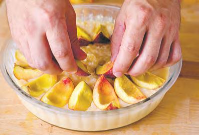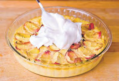 Vajazzunk ki egy kerek tűzálló tálat. Simítsuk a tálba a rizses keveréket, majd rakjuk ki a tetejét a cikkekre vágott barackokkal. Toljuk be a sütőbe, majd süssük 190 fokon kb. 35 percig.