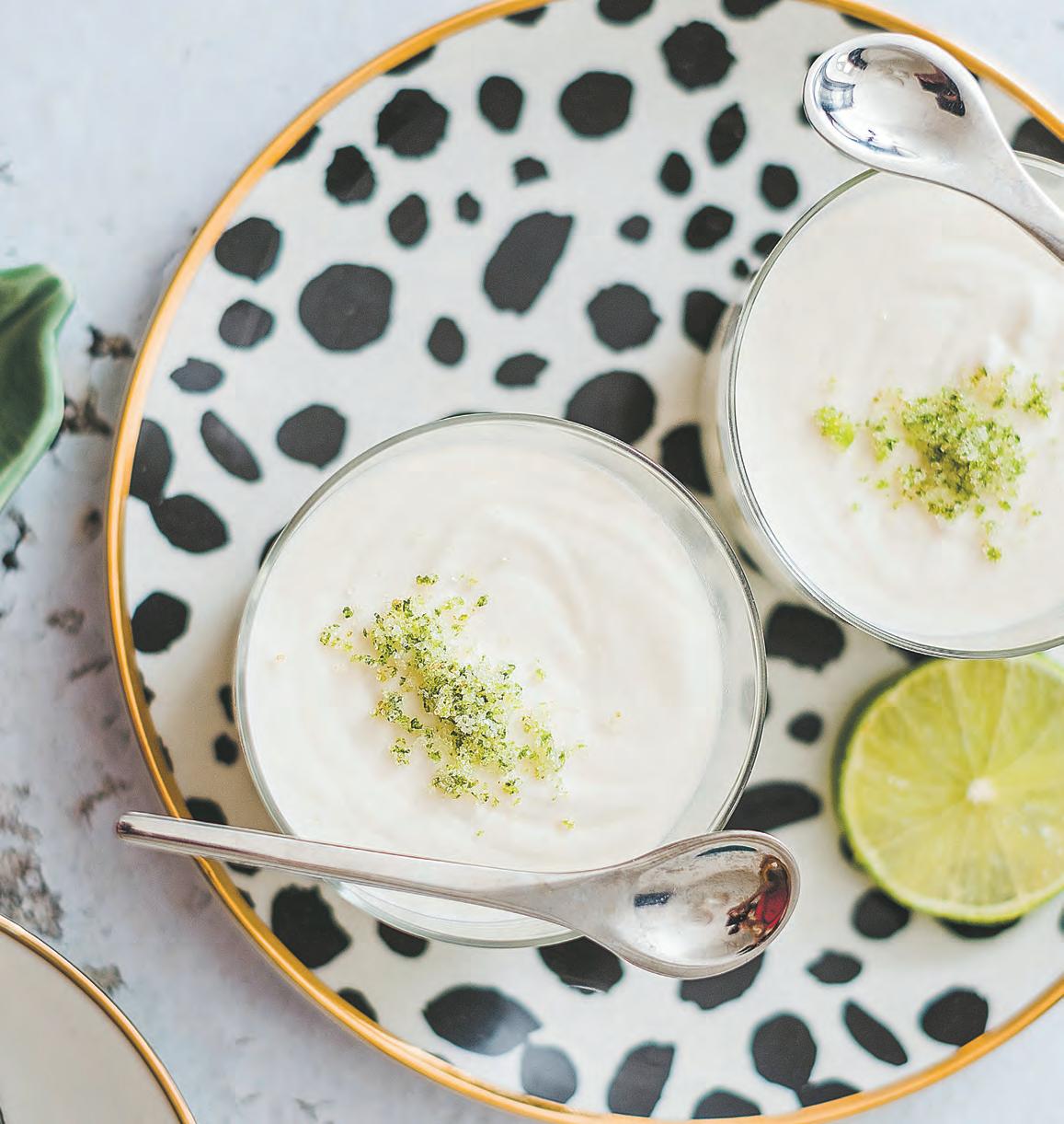 A díszítéshez az alaposan megmosott, szárazra törölt lime-ok lereszelt héját aprítógépben v agy mozsárban dolgozzuk össze a kristálycukorral és 1 csipet sóval, azután szórjuk meg az illatos c ukorral a desszertek tetejét. A csokoládés pohárkrémet tálalás előtt legalább 2-3 órára tegyük b e a hűtőbe.