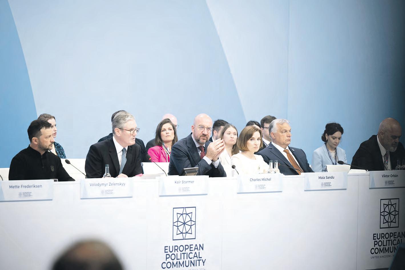 Politikai Közösség (EPC) negyedik csúcstalálkozójára. Az angliai Oxford közelében lévő Blenheim-kastélyban tartott csúcstalálkozó legfontosabb témái között az ukrajnai háború és a migráció is szerepelnek.