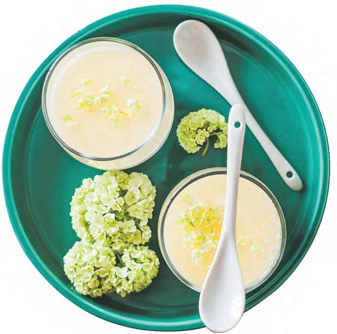 l 4 db zselatinlap l 600 ml cukrozatlan habtejszín l 100 ml 3,5%-os tej l 100 g kristálycukor l 3 ek. bodzaszörp l 1 db nagyméretű citrom l bodzavirág a díszítéshez