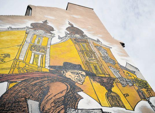 Szerdától egy 260 négyzetméteres műalkotás tiszteleg László Ákos grafikusművész előtt egy debreceni tűzfalon. FOTÓ: MTI