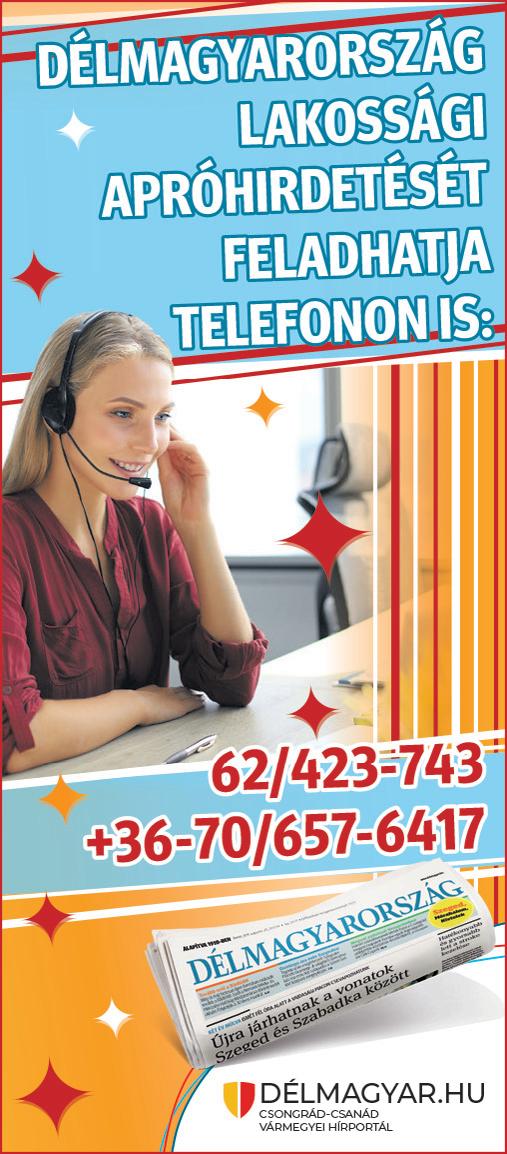 Nem kapott újságot? E-mail: terjesztes@delmagyar.hu, telefon: 06 94/999-120.