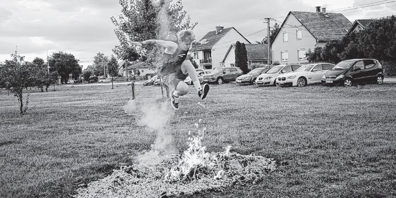 gedett, kipirult arcok hűtésére, a kiadott energia pótlására zsíros kenyér hagymával, pogácsa és különböző italok szolgáltak. A program vége felé a hamvadó tűz fölött kellett a vállalkozó bátraknak átugrania. Voltak, akik egyedül és voltak, akik társas módon próbálkoztak.