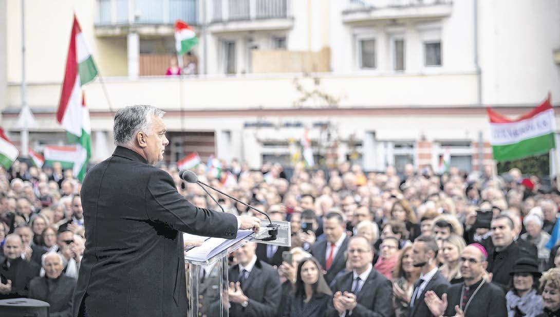 „A Jóisten mindannyiunk felett, Magyarország min denekelőtt, hajrá, Magyar ország, hajrá, magyarok!” – zárta ünnepi beszédét a mi niszterelnök. /7. MW