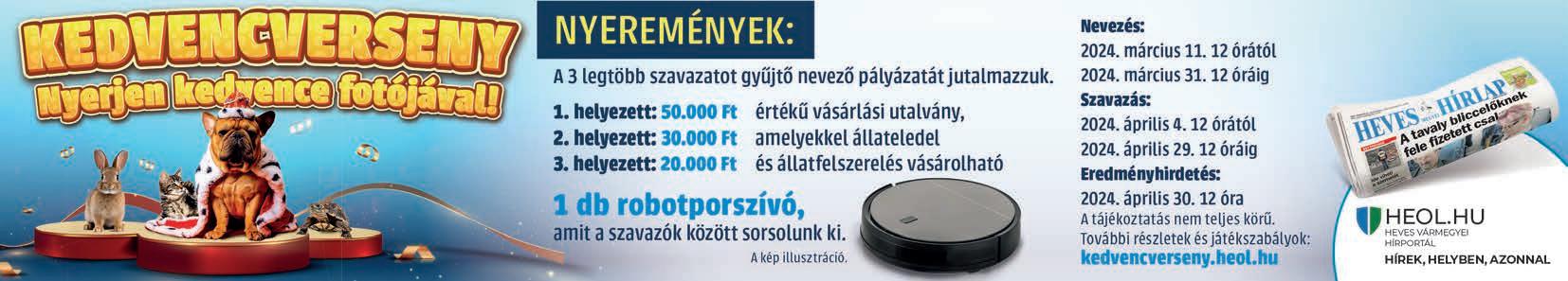 SZERKESZTŐSÉG: E-mail: szerkesztoseg@hevesmegyeihirlap.hu OLVASÓSZOLGÁLAT 36/999-111 TERJESZTÉS – kézbesítéssel kapcsolatos problémák esetén 46/998-800 HIRDETÉS – ha hirdetni kíván lapunkban, ezt a számot hívja 36/513-628 2024. MÁRCIUS 19., KEDD • XXXV. ÉVFOLYAM, 66. SZÁM. ÁRA: 275 FT. ELŐFIZETVE: 167 FT.