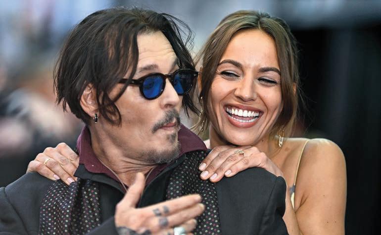 Johnny Depp alaposan meglepődött, amikor a vállára hirtelen rárepült Antonia Desplat.