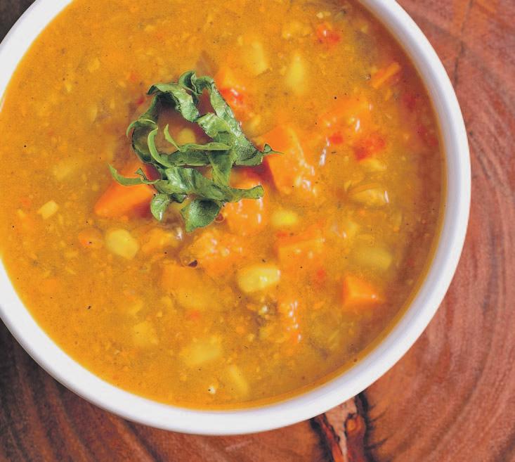 2. Ha elkészült, hozzákeverjük a kockákra vágott édesburgonyát, felöntjük az alaplével és puhára