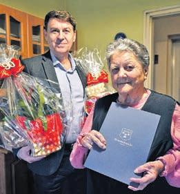 Az idei első ünnepelt korán megkezdte a sort: Varga Miklósné, Ilon néni ugyanis január elsején töltötte kerek 90. születésnapját. Őt a város nevében Lőrincz György polgármester és Lacknerné Fördős Klára, a művelődési ház igazgatója is köszöntötte, átadva a város díszoklevelét és ajándékcsomagját.