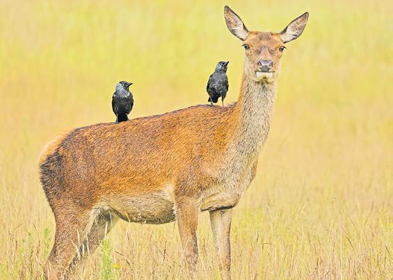 Egy csóka szállt rá az őzre, aminek még örült is a patás állat, hiszen a madár kiszedegette a bundájából a rovarokat. Még akkor sem bosszantotta fel magát, mikor még egy csóka érkezett a hátára, de az még ennek a békés őznek is sok volt, mikor az egyikük az orrára telepedett le, teljesen eltakarva az állat szemeit.
