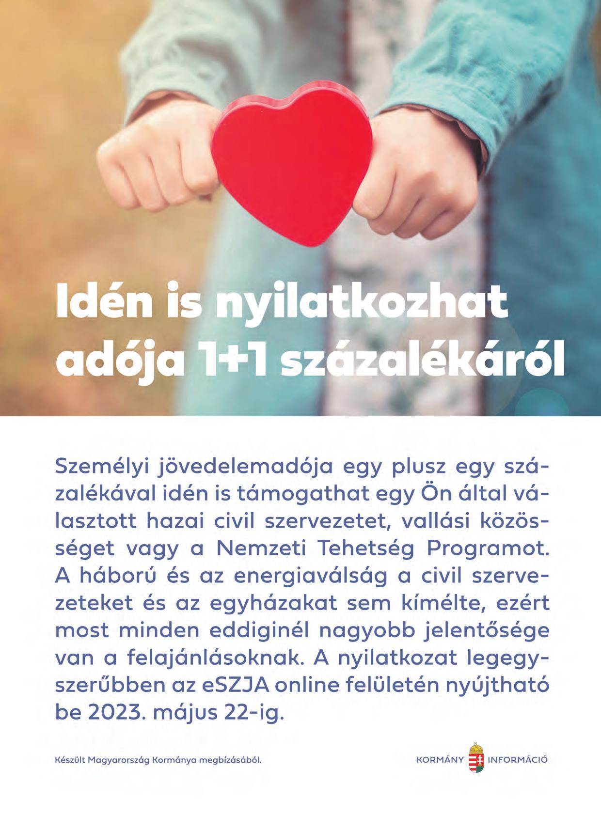 BENZIN, GÁZOLA J: tovább csökkennek az üzemanyagárak 2. oldal RDET ÉS R Novák Katalin a béke nagykövete, Magyarország mosolygós arca 8. oldal Elhunyt Máthé hé y Erzsi, a Nemzet , Színésze 1927–2023 Megállítható M h esz lesz a túlárazás Kötelező akciók 6. oldal 4–5. oldal