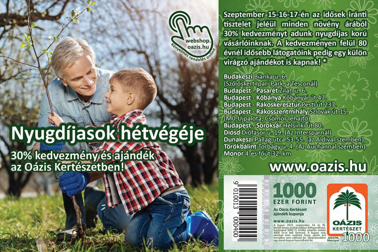2023. szeptember 14., CSÜTÖRTÖK | www.metropol.hu 6. oldal 4. oldal NÉZŐPONT INTÉZET: toronymagasan vezet a Fidesz 3. oldal HIRDETÉS HIRDETÉS Balázs Klári: Gyuri visszavágyik a régi házba 8. oldal RENDHAGYÓ KORMÁNYINFÓ ■ Több lépéssel csökkenti a kormány az inflációt ■ Még idén lesz nyugdíjkorrekció ■ Tárgyaltak a csok új formájáról