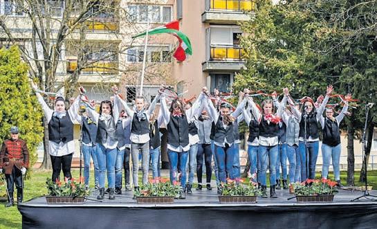 A megemlékezők kokárdát tűzve szívük fölé, koszorúzással emlékeztek meg a márciusi ifjakról, akik az 1848–49-es szabadságharcban nem féltek szembeszállni a hatalommal hazájukért.