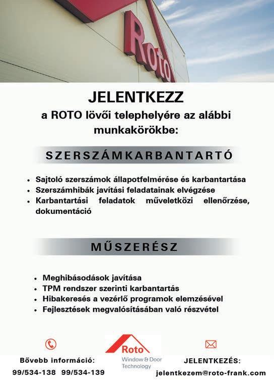 á Á á é MAGAS PÉLDÁNYSZÁM! HATÉKONY MEGJELENÉS! segít benne! A Kedvezményes hirdetési lehetőségekről érdeklődjön ügyfélszolgálatunkon: tel.: +36-99/511-388, mobil: +36-30/204-5313; e-mail: sopronpress@kisalfold.hu Szeretne megfelelő munkatársat találni?
