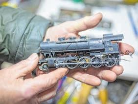 riát sárgaréz lemezből hajlítja vagy (ennek hiányában) hajlakkos flakonból, az alapot fotómaratással mintázza – ezt a technikát sok, hasonló hobbit űző tőle tanulta el. A kerekeket szintén maga fröccsönti. A legegyedibb műveletfázis mégis „a mozdony lelkének” megalkotása. Tágra nyílnak szemeim, amikor elárulja, hogy azt hajszárító, walkman vagy CD-lejátszó motorjából készíti, némi technikai átalakítással. Egy magnóban ő azt látja, hogy kitelne az alkatrészeiből egy-két 424es mozdony, a kedvence.