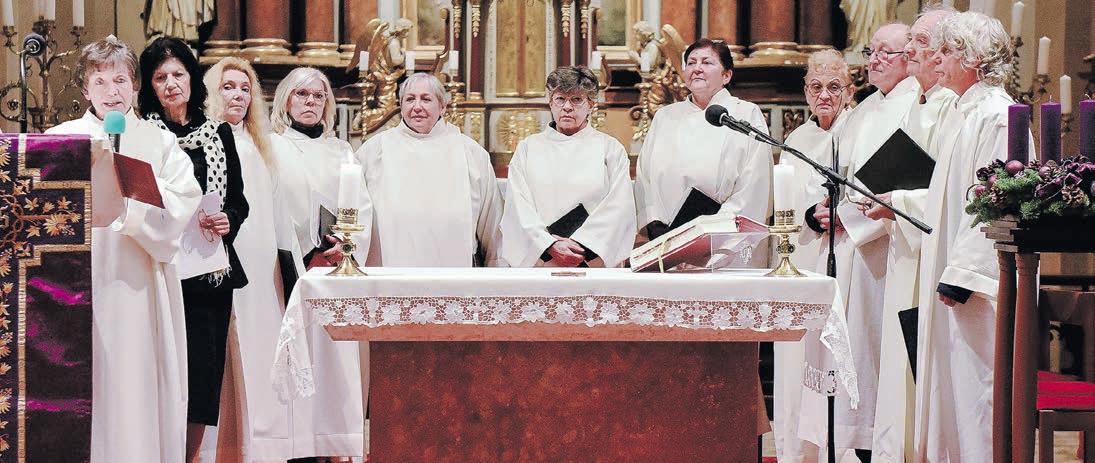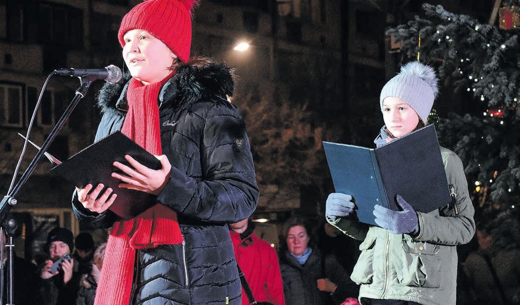 A kora esti órák programját a Tiszaparti Római Katolikus Általános Iskola diákjainak műsora és a Jubiláte kórus elő adása színesítette. Gáspár Ist ván atya igehirdetése után pe dig meggyújtották a Kossuth téren felállított adventi koszo rú első gyertyáját.