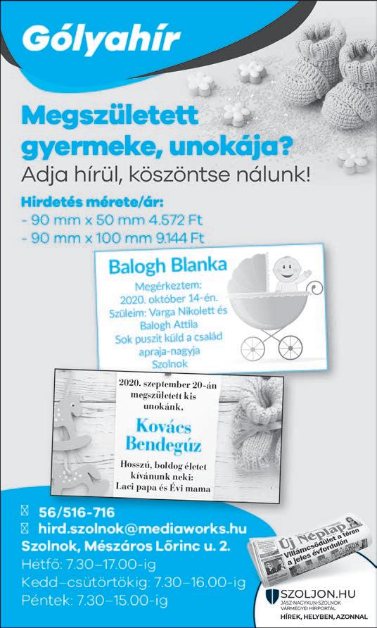 Hirdetésfelvétel: hird.szolnok@mediaworks.hu 56/516-716