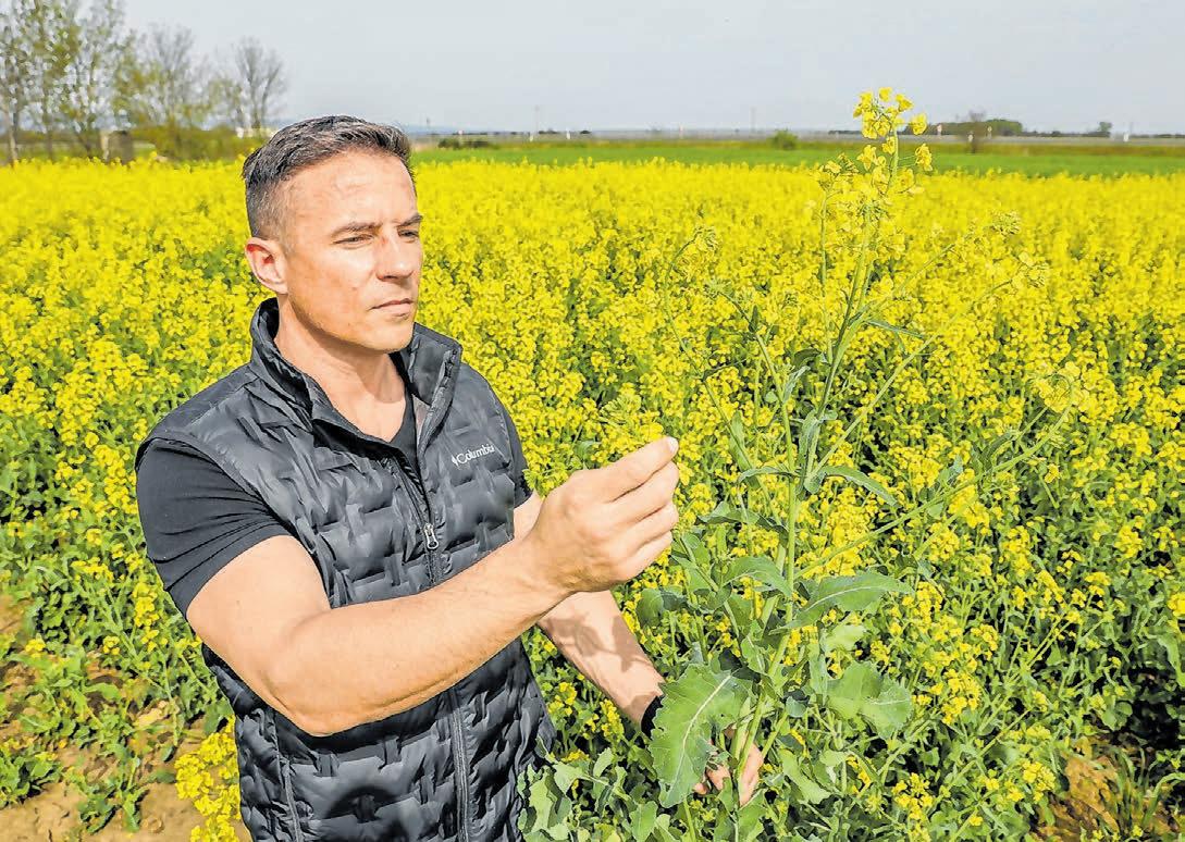 Márciusi virágzásra nem emlékszik, és az elmúlt esztendők fényképes dokumentumait végignézve nem is talált ilyenre példát – meséli Vajkovics Balázs növényvédelmi szakmérnök, a Vas Vármegyei Növényvédelmi Kamara elnöke, miközben Zanat határában a repceföld felé tartunk. A sárga virágok derékig érnek, de az Őrségben például az itteninél is szebbek, magasabbak a növények. Gyökerestül kihúz egyet, a szárat félbevágja –színe egységes, tartása is van, egészségesnek tűnik. A szakember úgy tapasztalja, vármegyeszerte elégséges volt a szárormányos elleni védekezés, a növénynek azonban még sokat kint kell aludnia a betakarításig.