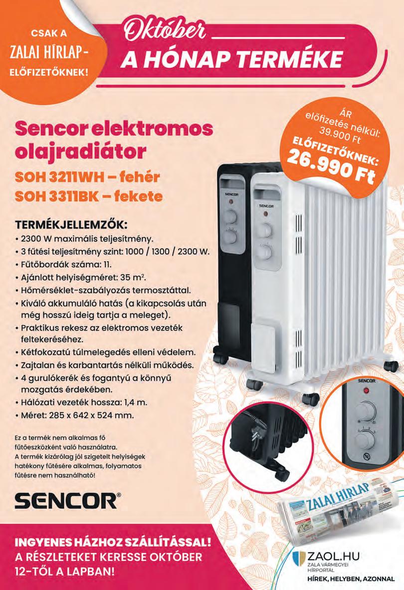 ZALA VÁRMEGYE Várjuk olvasóink voksait: csütörtökön (október 12.) 23.59-ig zajlik a szavazás zaol.hu hírportálunkon, ahol Önök dönthetik el, ki legyen a 2023-as Zalai Prima Díj közönségdíjasa. A VOSZ vármegyei szervezetével együttműködésben a tíz kategóriagyőztes jelöltet is bemutatjuk a zaol.hu-n, s a szavazással kapcsolatban minden fontos tudnivaló megtalálható ugyanott. A 2023-as Zalai Prima-elismeréseket – köztük a közönségdíjat – az október 14-i nagykanizsai gálaesten vehetik majd át a díjazottak. A 2023. évi kategóriagyőztesek, egyszersmind a Zalai Prima Díj jelöltjei: Pelesz Alexandra, Mihály Péter, Boa Endre, dr. Adel Rashed, Janzsó Antal, Baránka József, dr. Jáni János, Józsi György, Kiss-Molnár István, Pálóczi Horváth Ádám AMI. Keressék fel a www.zaol. hu/zalai-prima-dij-2023 oldalt, és döntsék el Önök, ki legyen az idei közönségdíjas! ZH