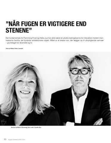 ”Når fugen er vigtigere end stenene” Det fundamentale for Flemming Frost og Helle Juul har altid været at udvikle betingelserne for interaktion mellem menneskerne fremfor det konkrete arkitektoniske objekt. Målet er at skabe rum, der lægger op til uforpligtende samvær – grundlaget for diversitet og liv. Tekst af Mikkel Weber Sandahl