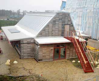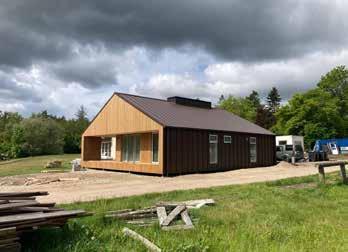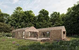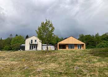 el.lign.” Vi ønskede at anvende et biobaseret materiale, som desuden havde historisk forankring i den stråtækte bygning, der tidligere lå på grunden. Stråtag kunne accepteres, men brandkrav gjorde det umuligt at overholde gældende afstandsbestemmelser.