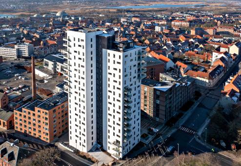 Winge Hus og Grønlundstårnet af C.F. Møller. Foto af Tom Jersøe