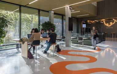 ske om åbenhed og videndeling. Uanset hvor man befinder sig i bygningen, kan man se alle etager, og det betyder, at man kan orientere sig og let bliver en del af det dragende kollektive og tværfaglige in novationsmiljø, som er på en fælles mission om at gøre verden til et bedre sted, siger Anders Wesley Hansen, partner, arkitekt og DGNB-konsulent hos Rørbæk og Møller Arkitekter.