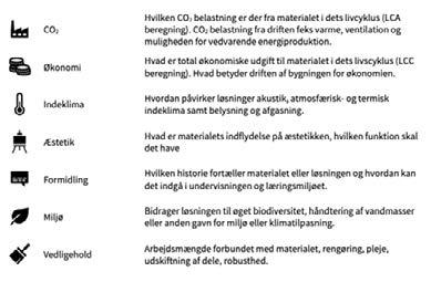 Kortlægning af byggematerialernes CO2-belast ning, sammen med en LCA-beregning på det sam lede byggeri og en vurdering af indeklimaet var de tre parametre for at vælge materialer til udbuddet.