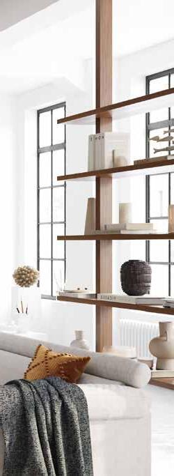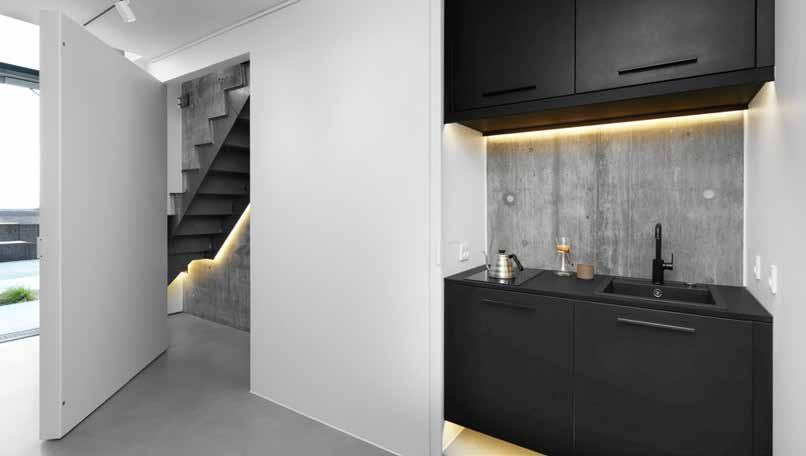 fik Kasper Mose Studio og Friis & Moltke med ind over, da de begge har en meget stor erfaring med denne type indretninger. Vi tegnede også små huse i foyeren, som både er mini-udstillinger af vinduer, men også små møderum, fortæller Troels Thorbjørnson, som også har arbejdet med aptering i sommerhusprojekter –igen for at pladsoptimere.