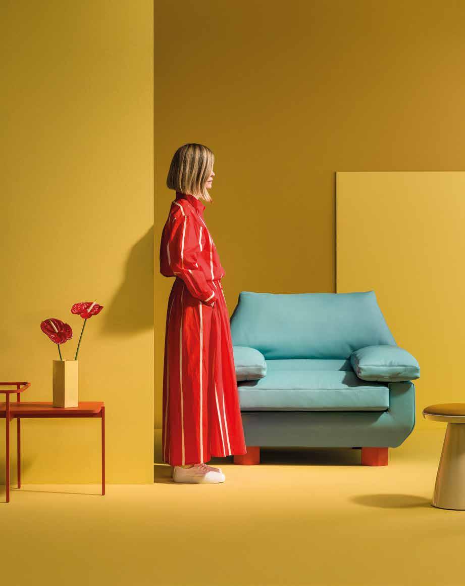 Men han elskede selv farver og ekspressive former, og han ønskede at eksperimentere og valgte derfor at gå en anden vej. Han ville gerne udfordre konventionerne for, hvordan man kan bo og leve, siger Carin Panton, der som >