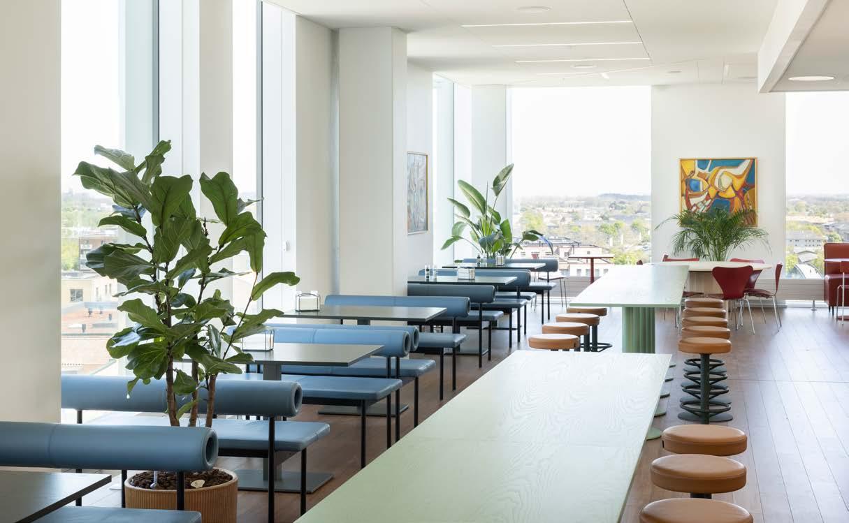 – Rummene er ens med de samme lofter og glasvægge, så variationen har været meget vigtig. Det er blandt andet sket ved at variere de møbler, der bliver brugt på de enkelte etager, så der for eksempel er høje stole ved nogle tekøkkener, mens andre har en sofa og at møderummene har fået forskellige farver på væggene. Det er vigtigt, at stedet både er rart og funktionelt som arbejdsplads, siger projektlederen.