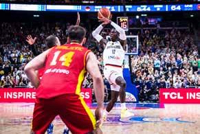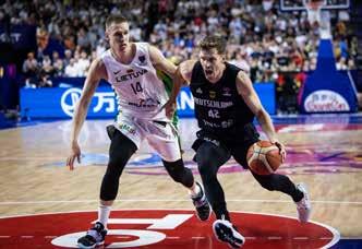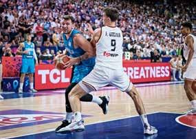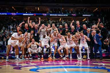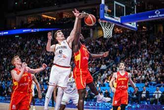Bei der im eigenen Land ausgetragenen EuroBas ket 2022 sorgte die deutsche Nationalmannschaft ordentlich für Furore. Mit vier Siegen und nur einer Niederlage erreichten Schröder, Wagner, Thiemann & Co. als Gruppenzweite das Achtelfi nale, in dem das Team von Bundestrainer Gordon Herbert Mazedonien und dann im Viertelfinale den hohen Favoriten Griechenland bezwang. Im Halb finale scheiterte man nur ganz knapp am späteren Europameister Spanien, holte sich aber im Spiel um Platz 3 gegen Polen die Bronzemedaille. Sämt liche Akteure haben bereits auf dem Bayreuther Parkett ihre Visitenkarte abgegeben. Neben den aktuellen Profis der BBL (Lo, Obst, Sengfelder,