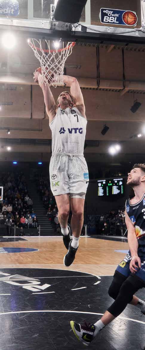 Die Abgänge von Stars und Hoff nungsträgern wie Jung-Nationalspieler Justus Hollatz (Breogan/ESP), Mike Kot sar (Baskonia/ESP) und Caleb Homesley (Zenit St. Petersburg/RUS) wiegen schwer. Center-Routinier Jonas Wohlfarth-Bottermann, der zu vor über 350 Bundesligaspiele für Bonn, Berlin, Frankfurt, Ulm und zuletzt Ludwigsburg absolvierte, und der slowenische Auf bau-Neuzugang Ziga Samar konnten aufgrund der EM-Teilnahme erst mit deutlicher Verspätung in die Saisonvorbereitung mit ihren neuen Mannschaftskameraden einsteigen. (fk)