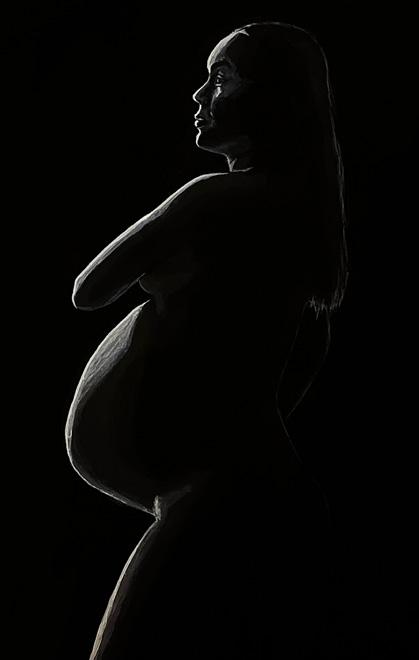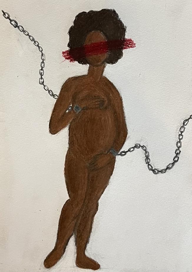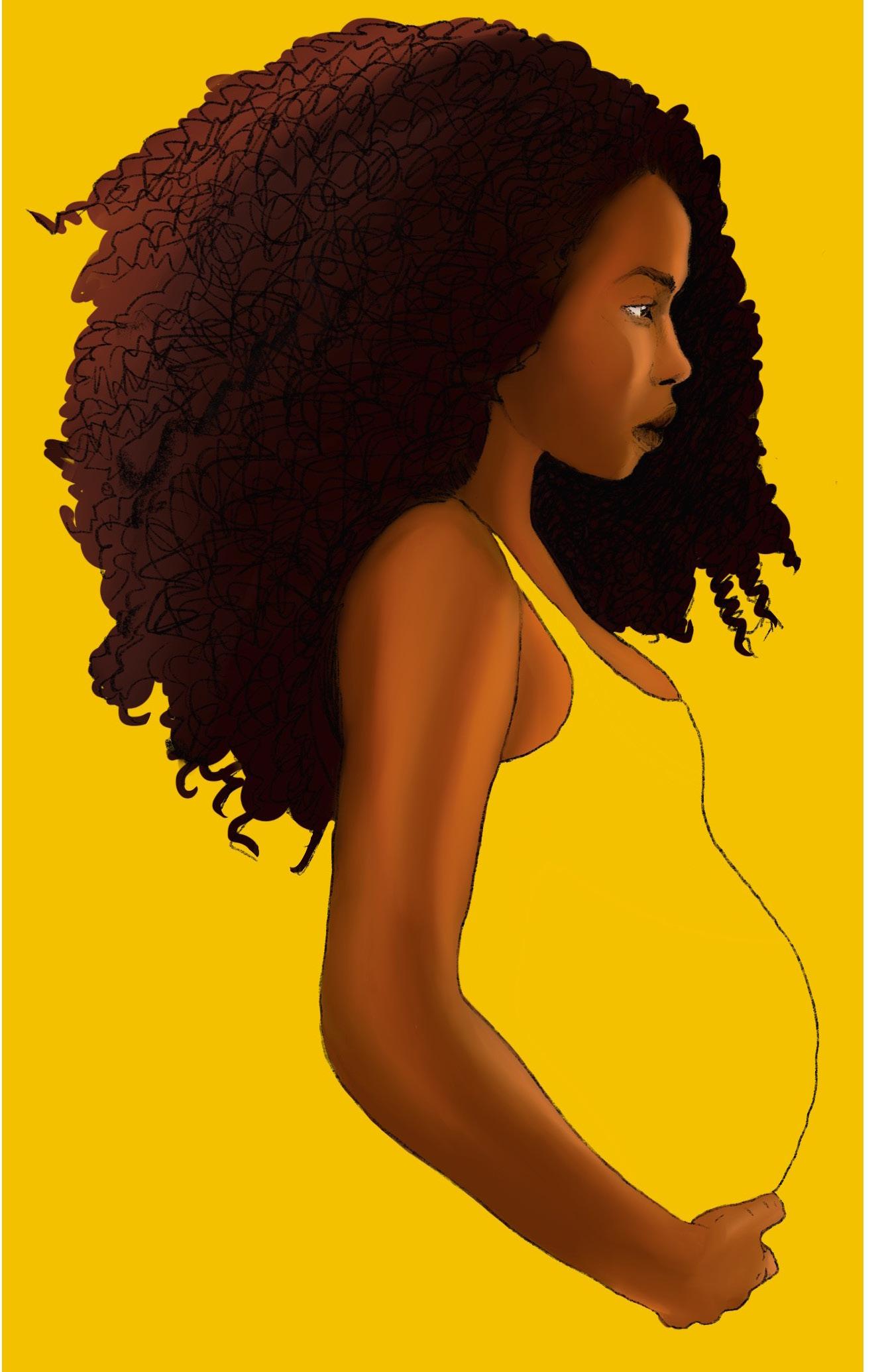 “The painting was based on the mistreatment of women in maternity care, labor, and delivery during the COVID-19 pandemic. I wanted to convey the form of a pregnant woman against the darkness of mistreatment surrounding her while she remained strong and proud through this time.”