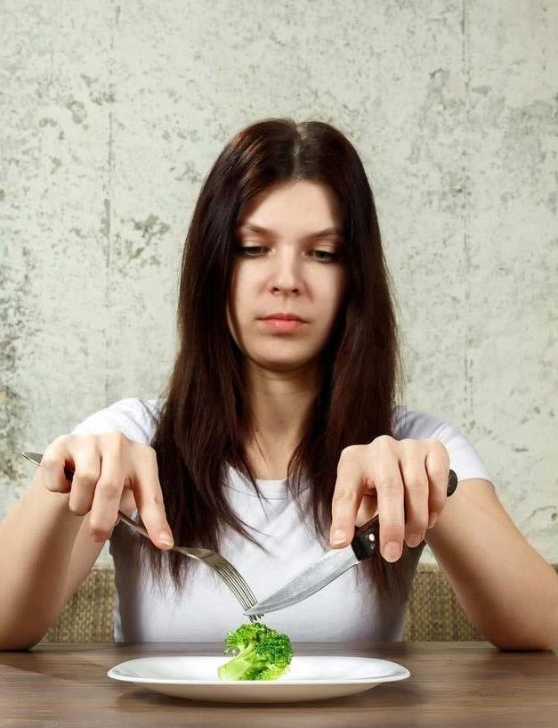 • Debilidad, dolor óseo, osteopenia y osteoporosis. • Reducción de la masa cerebral, disfunción cognitiva y de la memoria. • Supresión de producción hormonal, ausencia del ciclo menstrual. • Reducción del músculo cardíaco, reducción de la frecuencia de latidos y bajo nivel de presión arterial. • Pérdida muscular en la vía digestiva, produciendo retraso en el vaciamiento gástrico, sensación de plenitud, constipación. • Daño de esmalte dental y várices en el esófago, en casos de inducción al vómito. • Afectación del sistema inmunológico. • Desbalance de líquidos y electrolitos corporales.