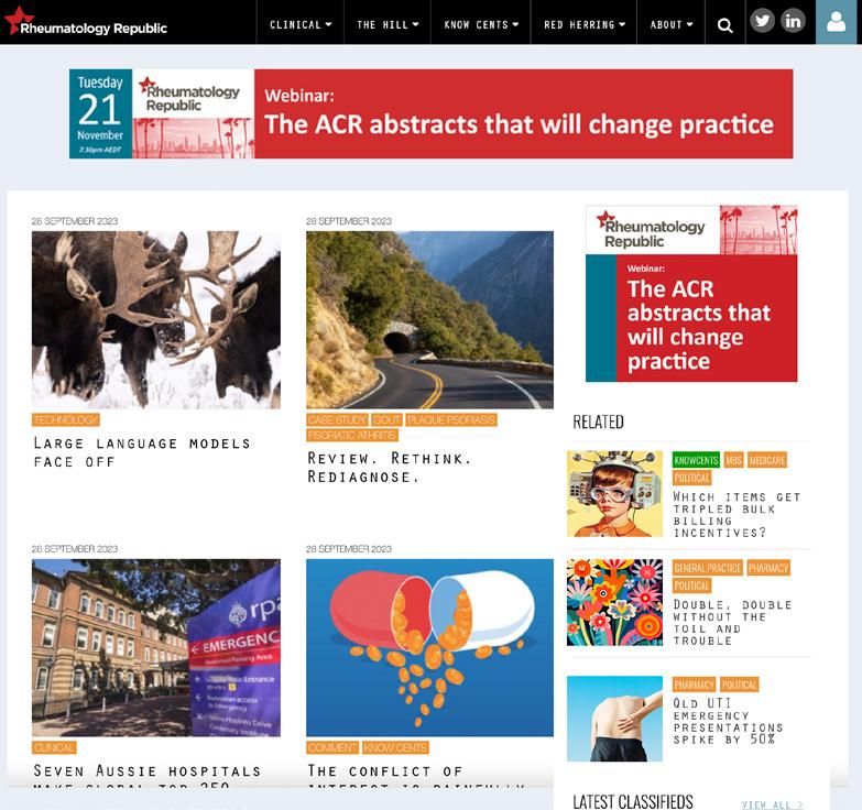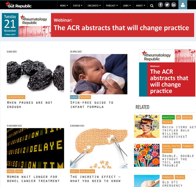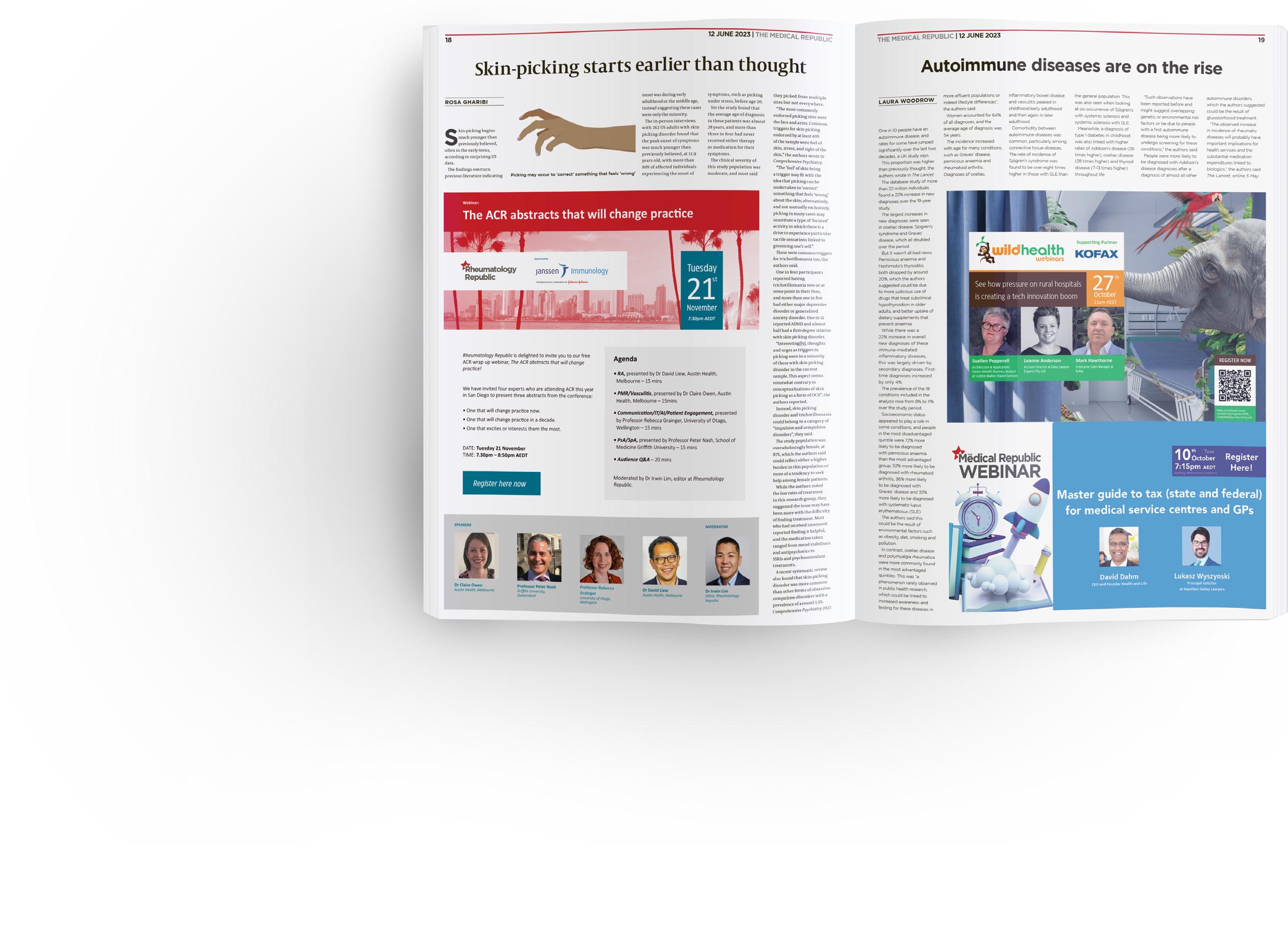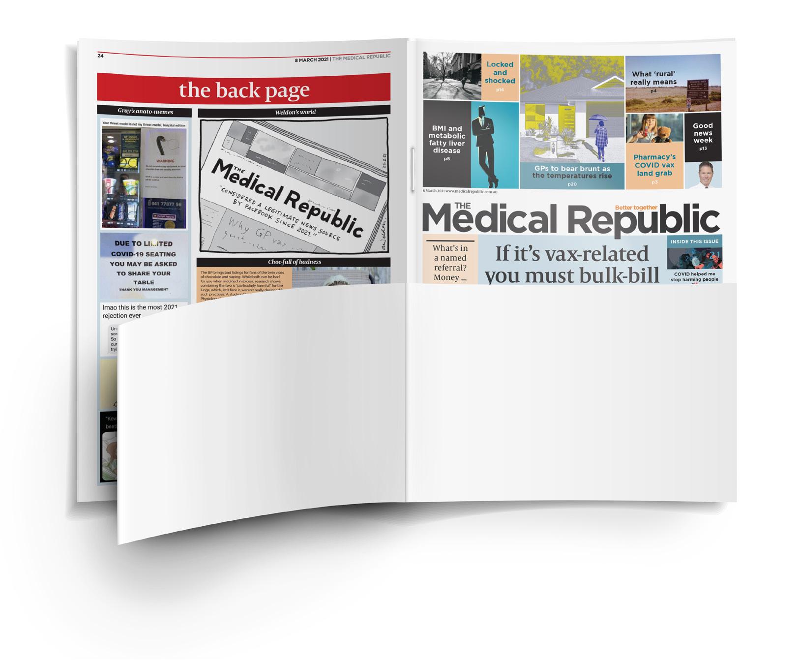 The Medical Republic is a new style publication for Australia’s present-day clinicians. We’re not #justanewspaper. We give you the story behind the story, both sides of the debate, the people, the medicine, the ideas, the controversies ... and the just plain interesting. There is a lot of medical news out there but there’s only one Medical Republic