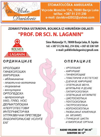 Redakcija: 78000 Banja Luka, Branka Ćopića 15, Tel: +387 (0)51 318 606, +387 (0) 65 603 346; e-mail: medici.com@blic.net; www.medicicom.com