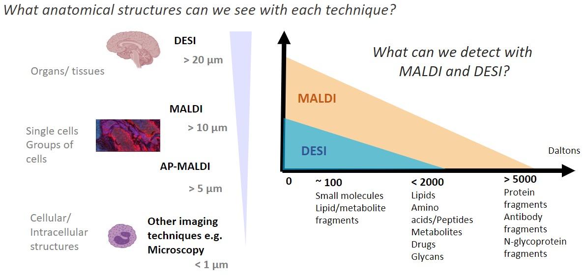Kerry Shea, Regine Anderson, Michael Eyres, Bruno Bellina, Tara Bowen, Maike Langini, Andrzej Rutkowski, Philippa Hart, Irma Berruta Razo, Lucy Frost, Gayle Marshall Medicines Discovery Catapult, Block 35, Alderley Park, Cheshire, SK10 4ZF, UK. Identification and Profiling of Biomarkers in Neurodegeneration Mass Spectrometry Capabilities • Novel biomarkers are necessary to further the development of treatments for neurodegenerative diseases like Alzheimer’s Disease, Amyotrophic Lateral Sclerosis (ALS) and Parkinson’s Disease with advanced and emerging technologies being crucial for their identification and validation in both tissue and fluid samples • Tissue samples can be spatially profiled using a range of techniques, including the GeoMx Digital Spatial Profiler to examine transcriptomic or proteomic profiles of specific regions and mass spectrometry imaging to examine a range of molecules including metabolites and lipids The outputs from these technologies can be overlaid to examine variations between diseased and control samples • Liquid samples like plasma or cerebrospinal fluid can be used to track biomarker profiles longitudinally and can be interrogated using Luminex or Simoa technology alongside mass spectrometry for a wide range be interrogated for a deeper understanding of drug and disease Introduction 844 Beta-Amyloid HLA-DR Deeper understanding of drug and disease – Tissue Advancing Biomarker Discovery and validation through combining standard and emerging technologies • Highly multiplexed readouts can be interrogated for a deeper understanding of drug and disease • Hypothesis free and hypothesis driven biomarker analysis workflows are being established to compare gold standard methods to emerging multiplexing platforms Lipidomics metabolomics and Proteomics Time (Days) ● RNA ● Protein ● Lipids ● Small Molecules Homogenised Tissue (RNAseq, Nanostring nCounter) Mass Spec Imaging Spatial Multiomics Cell Type Profiling/ Target Engagement (Confocal/ Multiphoton/ SuperResolution microscopy) Gold standard assays (IHC/IF& ISH in vivo Imaging Biodistribution, disease phenotyping, efficacy (PET, CT & IVIS) Biomarker Identification/ Drug distribution (DESI/ MALDI) Tissue Profiling Transcriptomics/ Proteomics DSP/ seq) Histology Pathway Analysis ● Deeper understanding of drug and disease – Circulating Liquid biopsies are just as valuable as they give a real time insight into the patient's disease and response • Opportunity to utilise longitudinally • Additional multiplexed readouts can be interrogated/overlaid to support hypothesis observed • Circulating factors can provide information on the heterogeneity of the disease along with early response or resistance biomarkers, often before clinical responses are observed signal D538G signal RNA Protein Lipids Small Molecules DNA Circulating RNA (RNAseq, nCounter) Circulating Metabolites, proteins and lipids (MS) Circulating Disease DNA/CNV (ddPCR) Circulating soluble markers (Luminex/ Simoa) Circulating Cells (multiple platforms) Single Cell RNAseq (10x Genomics) Sample Acquisition We can run analysis on your own samples, assist with acquiring relevant human samples or run in vivo models to acquire animal samples if required. Samples from in vivo Models In addition to validating new models and extensive experience of neurosurgical techniques we have experience of running numerous mouse models of disease: Human Samples A dedicated samples team that has built connections with various sample providers including biobanks with global networks – this enables us to access ‘hard to find’ samples at competitive rates. • Extensive experience in sourcing a variety of high-quality samples including brain tissue, spinal cord and biofluids from donors with conditions such as Amyotrophic Lateral Sclerosis, Alzheimer’s Disease, Parkinson’s Disease, Huntington’s Disease. • Experience in establishing new bespoke sample collections in a timely manner based on the needs of our collaborators. Our samples team is well versed in managing applications for external ethical approvals to ensure compliance with HTA guidelines. Alzheimer’s