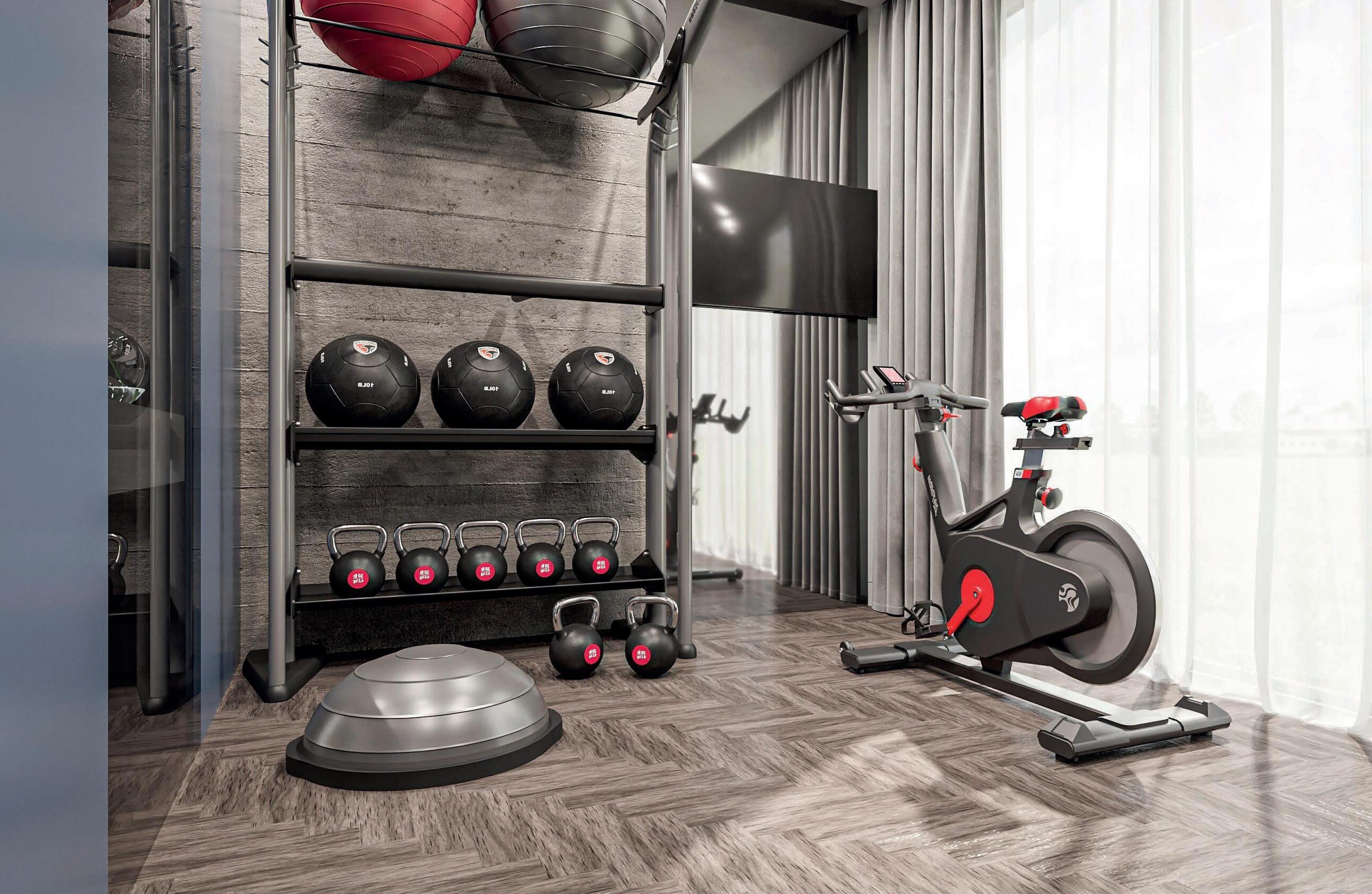 • En motionscykel, kombineret med det mest populære mindre træningsudstyr, monteret på en væg, kunne f.eks. være en mulighed.