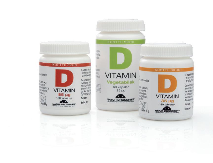 Natur-Drogeriet har tre forskellige D-vitamin produkter; D-vitamin med 85 μg pr. tablet · D-vitamin med 35 μg pr. tablet En vegetabilsk variant, hvor du får 25 μg D-vitamin pr. kapsel.