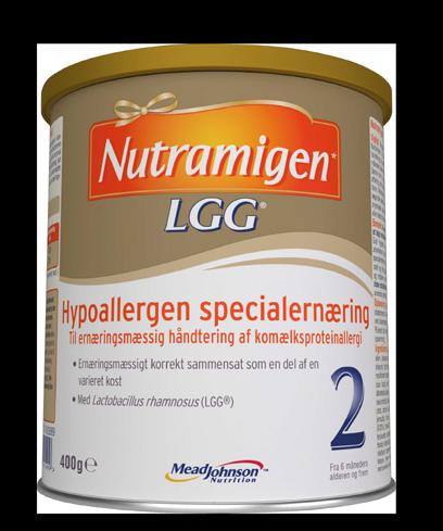 Nutramigen 2 LGG – anvendes til spæd- og småbørn, diagnosticeret med komælksproteinallergi fra seks måneders alderen og frem som en del af en varieret kost (mælke fri kost). Nutramigen 2 indeholder mælkesyrebakterien (probiotika) LGG® .