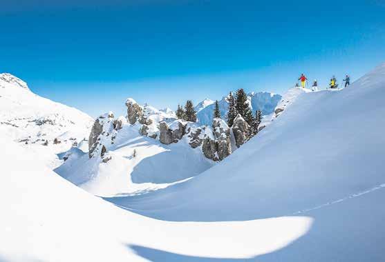schuhe inklusive Stöcke in einem der lokalen Sportgeschäfte. Geführte Schneeschuhwanderungen bieten z. B. Arlberg Alpin Skischule Mohnenfluh, Four Seasons Guiding, Arlberg Free Moving, Schneesportschule Omeshorn oder die Skischule Oberlech an.