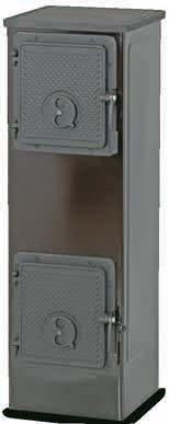 Nennwärmeleistung 5 kW, Korpus Stahl, schwarz, Rohranschluss hinten ca. Ø 120 mm. Ca. B 29 x H 88 x T 29 cm. Ohne Bodenplatte und Rauchrohr. Art.-Nr. 45320913 mit Rüttelrost