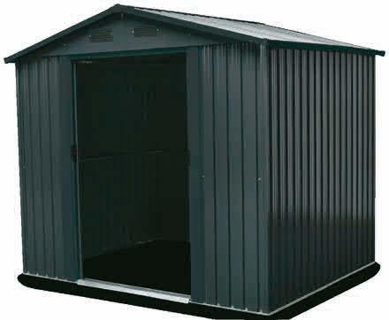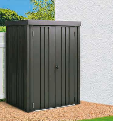 Stahlblech, Flachdach, abschließbare Doppeltür, Gerätehaken, Regenrinnensystem. Ca. B 133 x H 185 x T 98 cm. Art.-Nr. 45393381