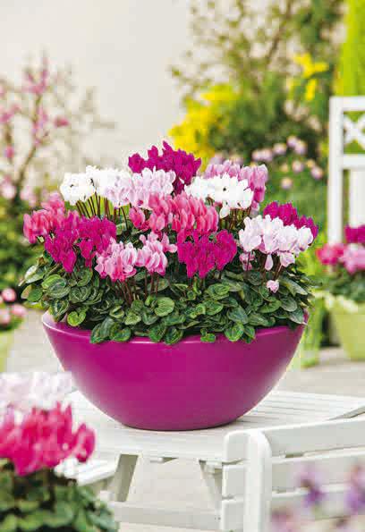 Cyclamen persicum. Im 10,5-cm-Topf. Ohne Pflanzgefäß. Versch. Farben. Art.-Nr. 301222