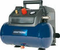 1,2 kW (1,6 PS), Ansaugleistung ca. 190 L/min, max. Druck 8 bar, Kesselvolumen 6 L, mit Druckminderer und Manometer. Inkl. 5-m-Schlauch, Ausblaspistole, Reifenfüller und 8 Adaptern. Art.-Nr. 45445067