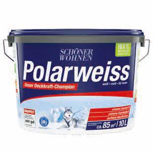 Matte Premium-Innenfarbe mit sehr hoher Deckkraft, Deckvermögen Kl. 1 (8 m²/L), Nassabriebbeständigkeit Kl. 2, weiß. 10 L. Art.-Nr. 45487419